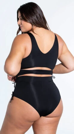 Swimwear meets seduction. Take the plunge into the deep blue sea in this sexy plus size one piece swimsuit featuring a scoop neckline, thick shoulder straps with a low open back, a plunging sheer mesh front panel, high cut sides, and a cheeky cut back.