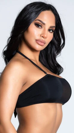 A cute spin on a classic tri top. They’ll be gazing at your stars and stripes in this sexy bikini swimsuit top featuring adjustable triangle cups with a patriotic American flag print, halter ties, a crinkled trim, and a tie back closure.
